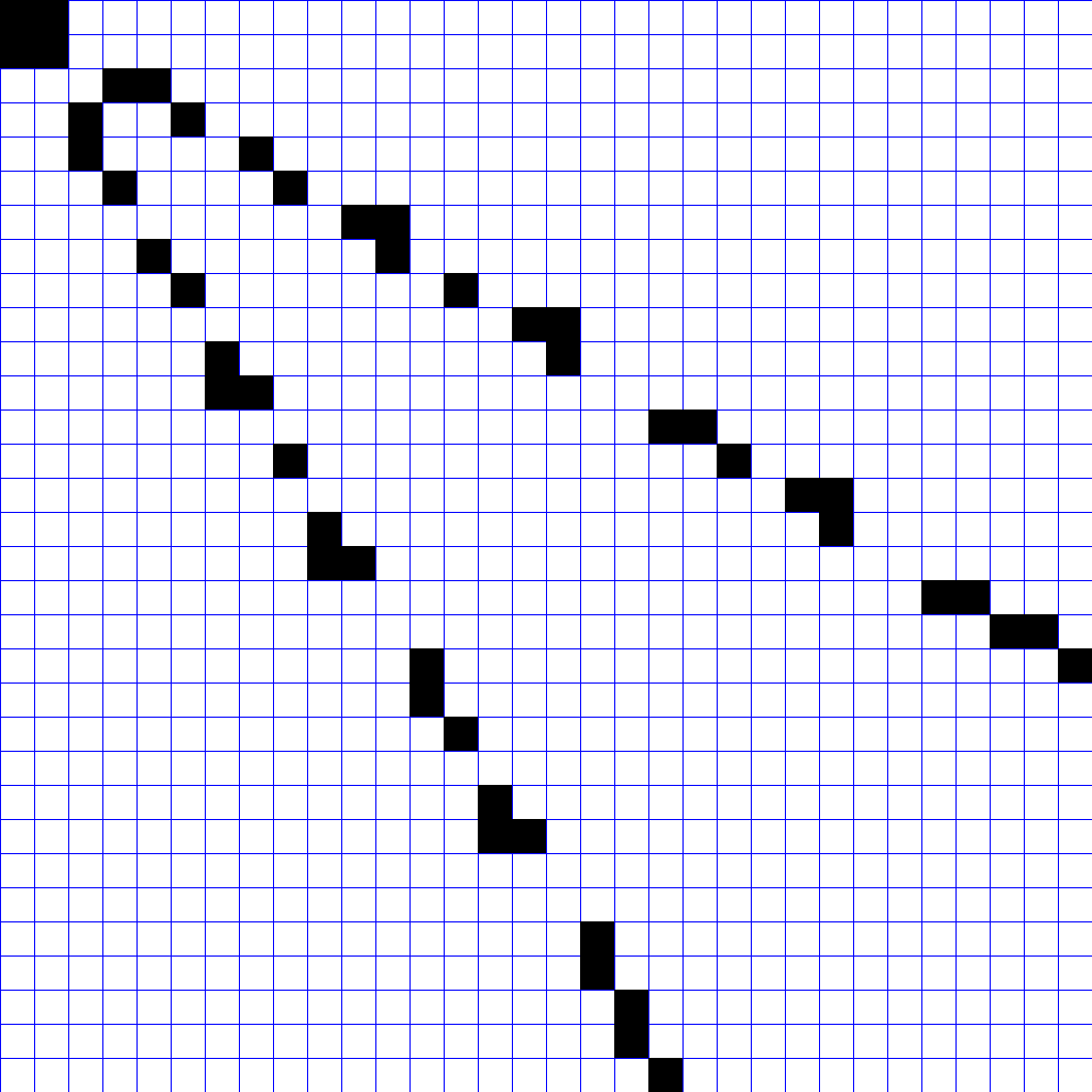 La premisa consiste en dibujar un máximo de dos pixeles por línea horizontal, línea vertical y línea diagonal.